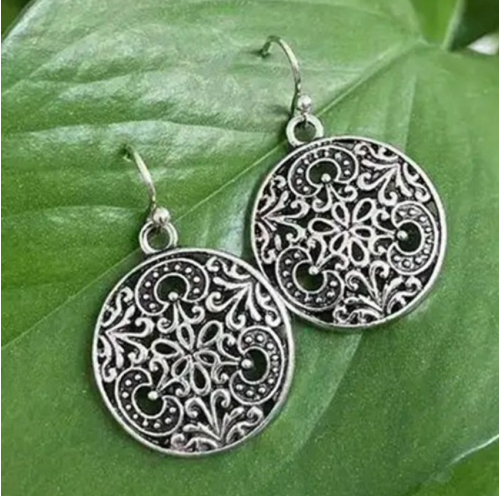 Hollow Floral Pattern Round Hanging Earrings For Women